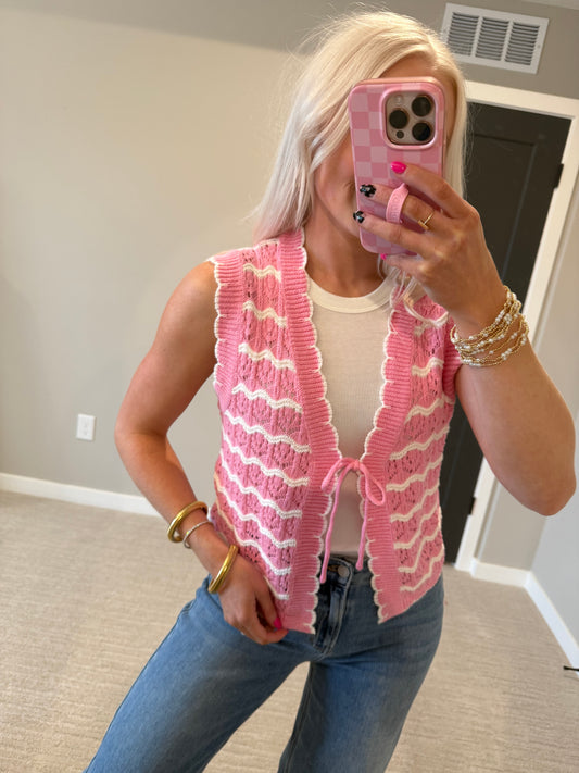 Pink Striped Crochet Top