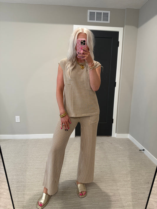 Khaki Cream Pant Set