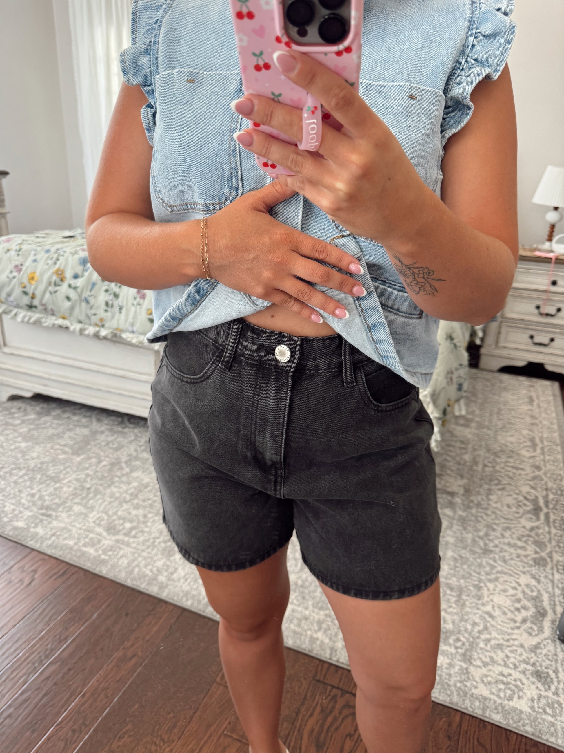 Black Denim Mom Short
